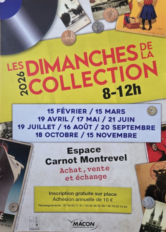 Ce rendez-vous mensuel voit, à partir de 2026, son calendrier légèrement modifié. En effet, dorénavant, pour éviter un doublon en janvier avec le Salon de la Collection, ce rendez-vous mâconnais des collectionneurs ne se tiendra plus que de février à novembre inclus, rallongeant la trêve hivernale de décembre à janvier.
